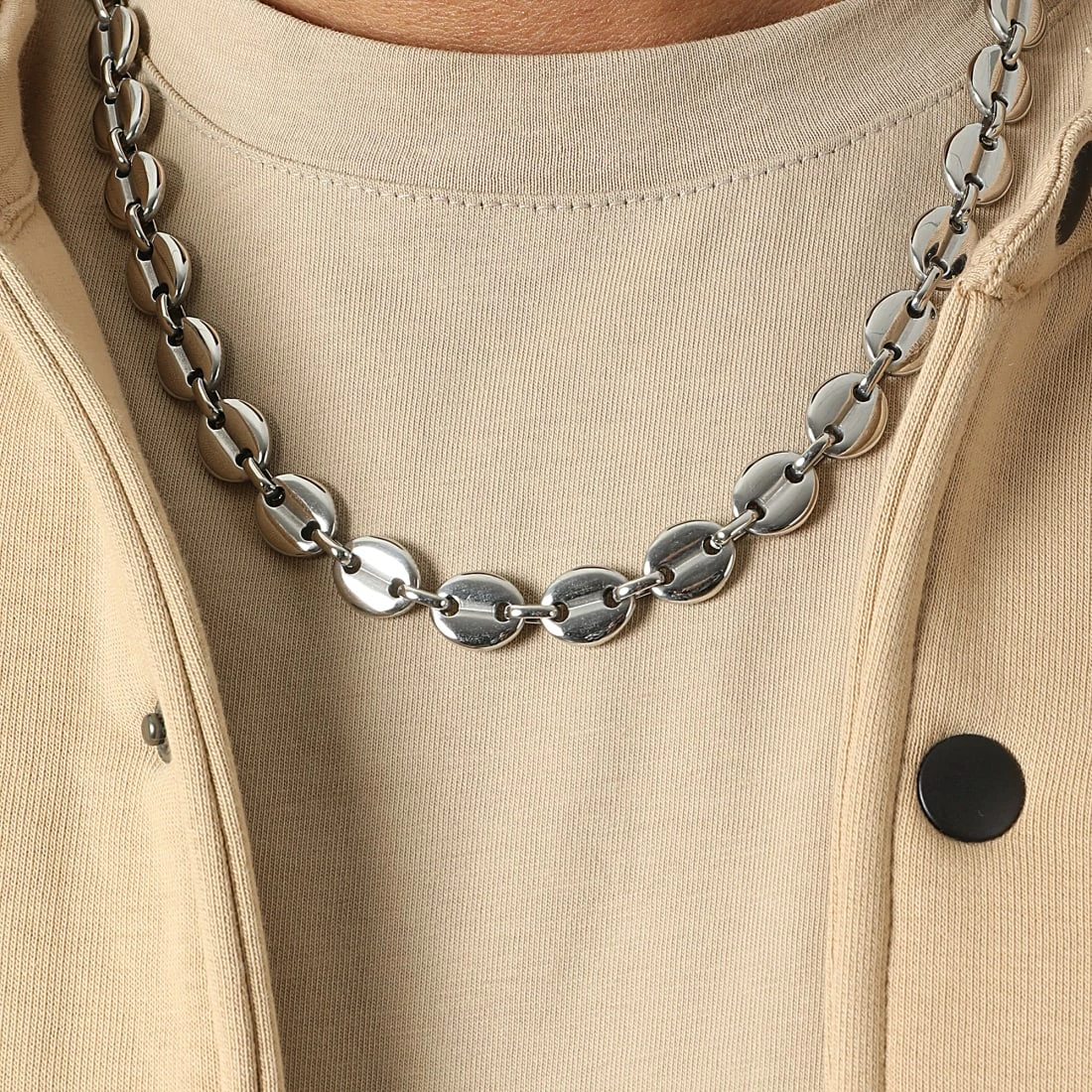 • Collier grain de café 10mm Argenté