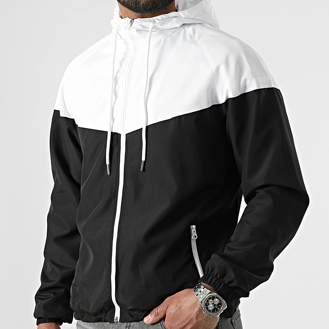 • Coupe-vent bicolore zippé à capuche