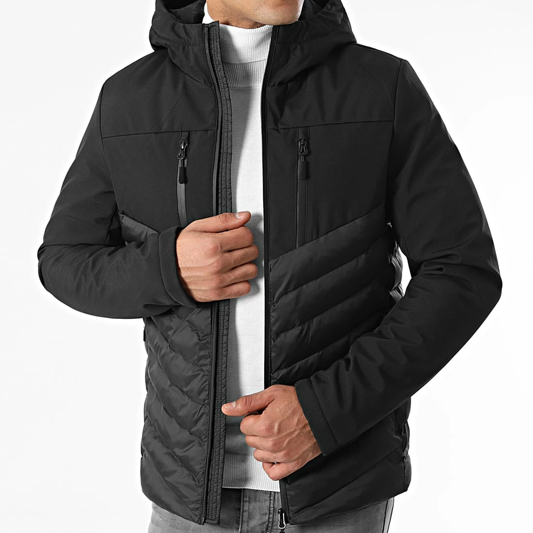 • Doudoune bi-matière rembourrée à capuche