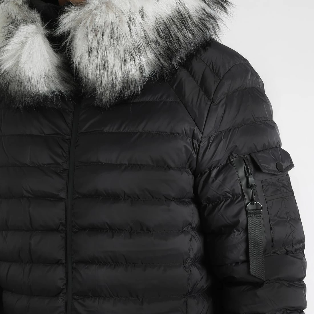• Doudoune urbaine rembourrée avec capuche à fourrure synthétique amovible