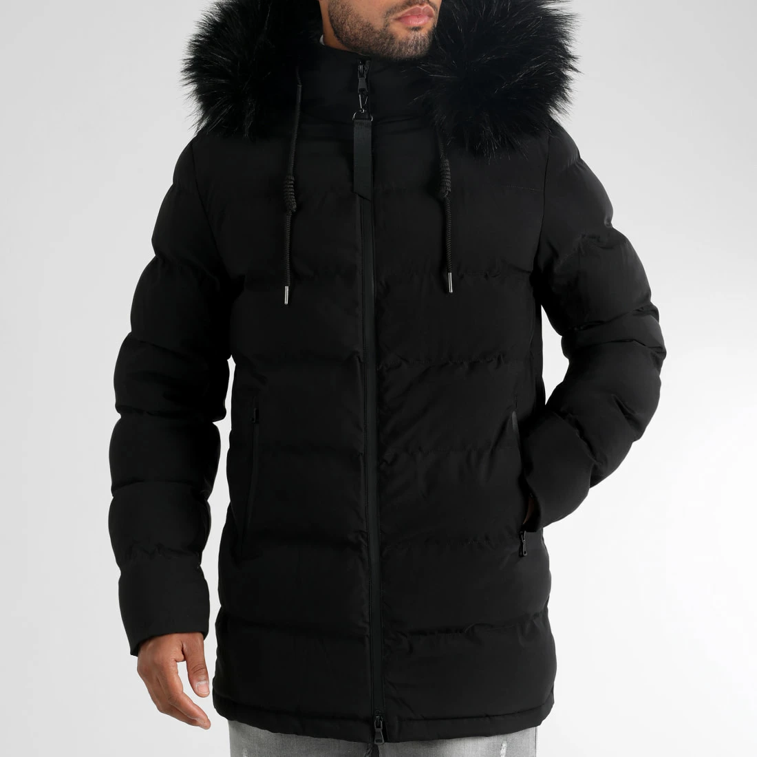 • doudoune tendance avec capuche et multipoche zippée sur la manche