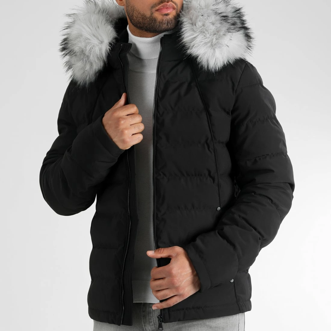 • Doudoune tendance avec capuche et multipoche zippée sur la manche