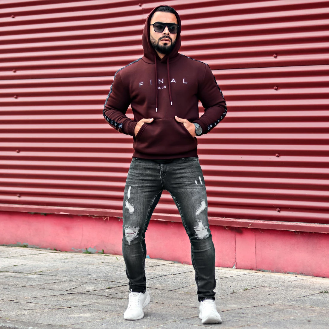 • Jean slim stretch finition délavée et usée avec trous apparents
