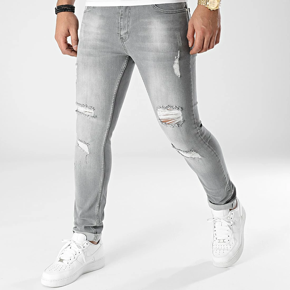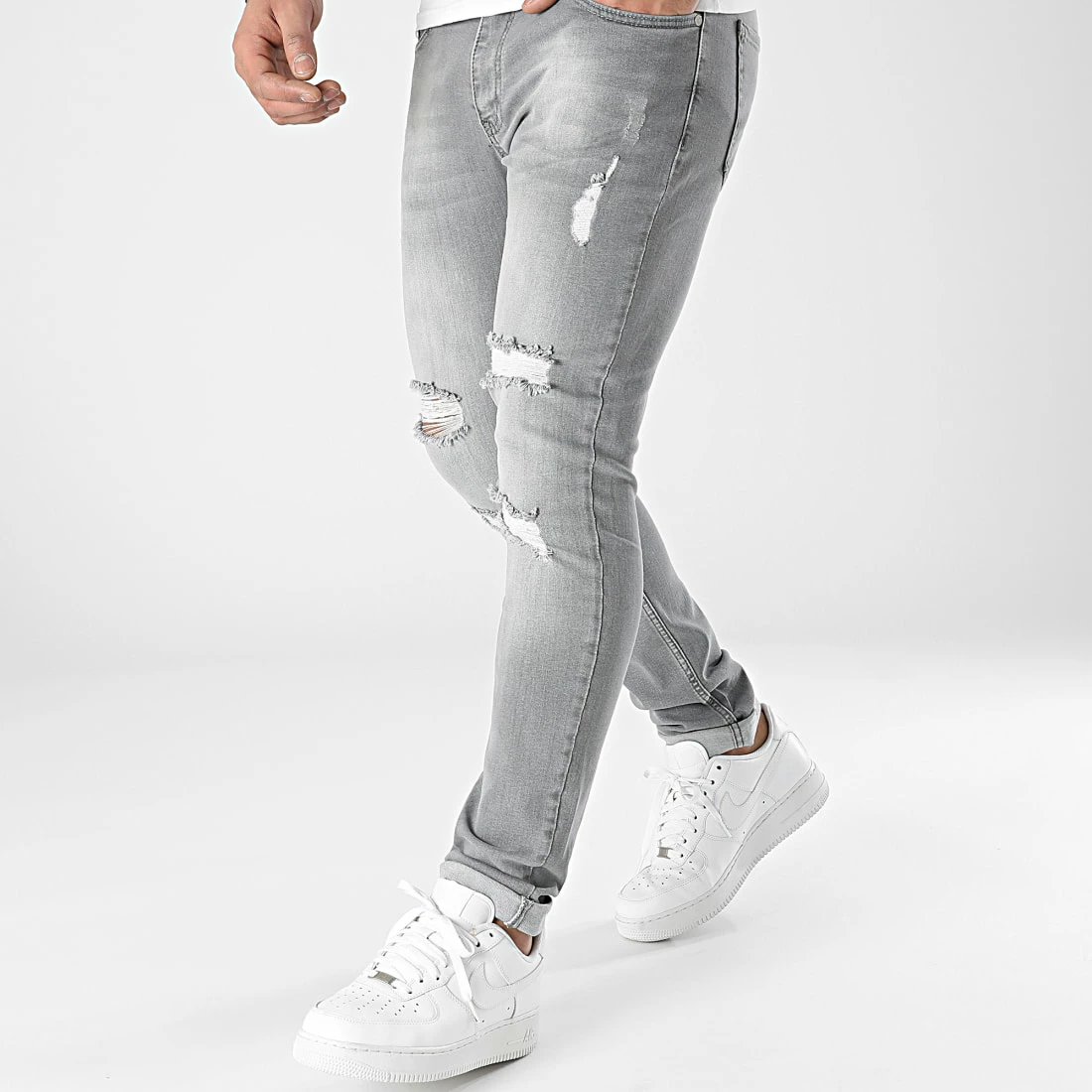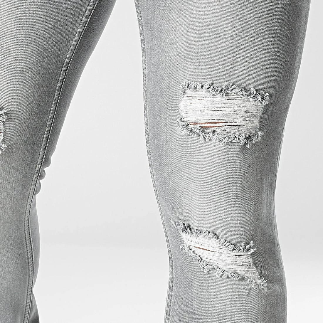 • Jean slim finition usée et délavée avec trous apparents