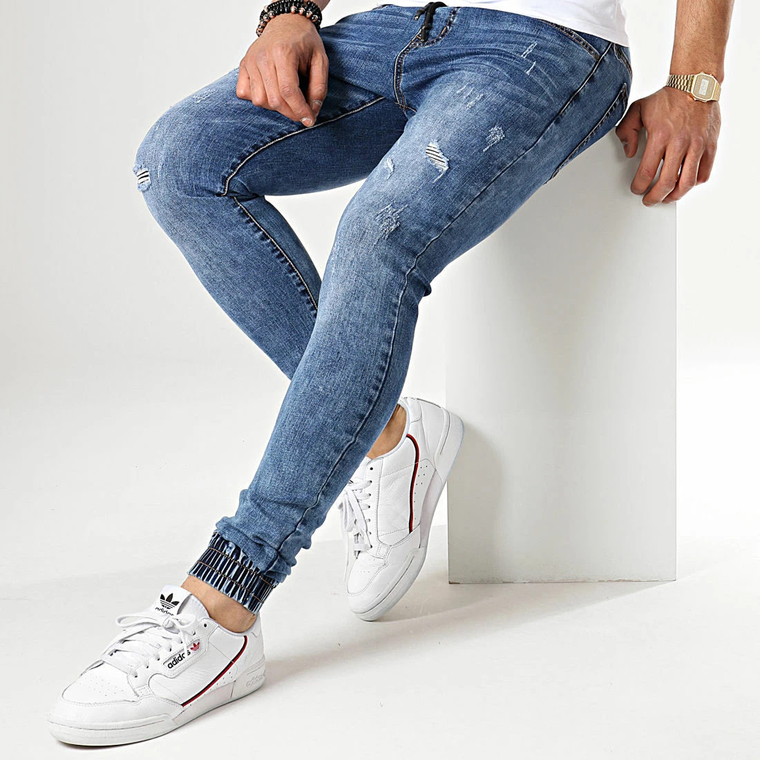 Vente flash 🔥 Jogger Pant Skinny 👖 Jeans Avec Dechirures LC20180426-1D Denim Bleu Medium de LBO 🧨