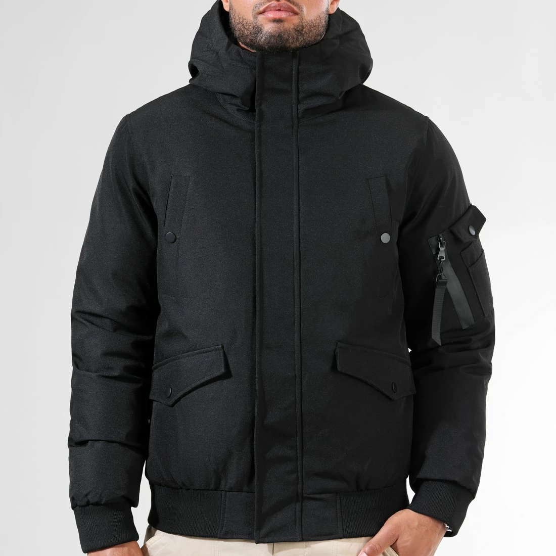 • Parka tendance avec capuche et multipoche zippée sur la manche