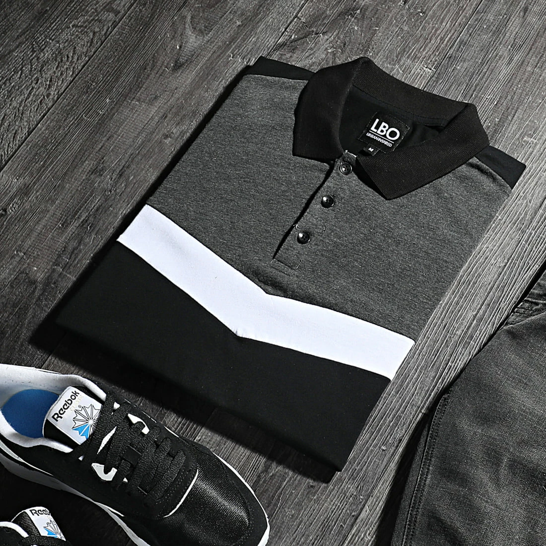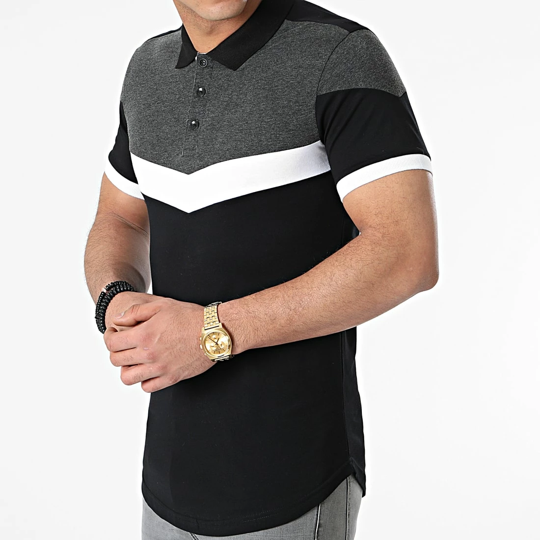 • Polo manches courtes tricolore en coton stretch