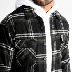 Vente flash 😍 Surchemise A Carreaux 2487 Noir Vert Kaki de LBO 🥰