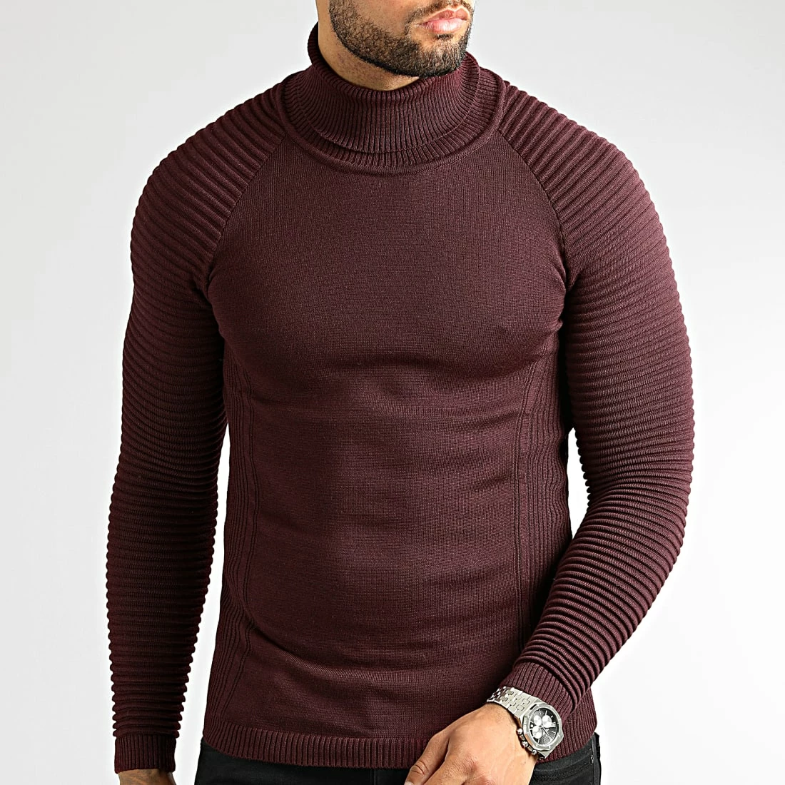 Vente flash 😀 Pull Col Roulé Avec Empiecement 0197 Bordeaux de LBO 🎉