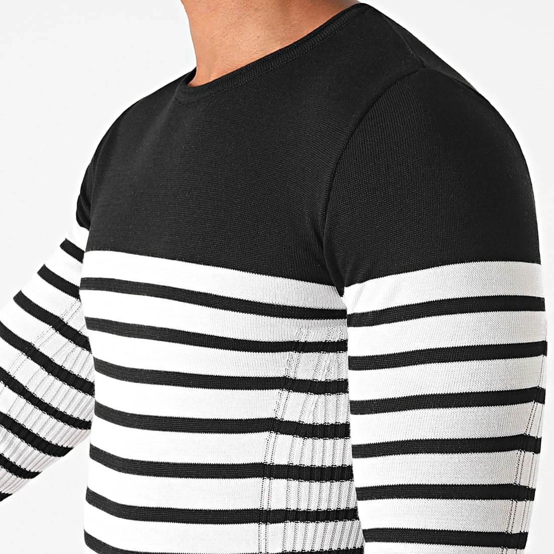 • Pull bicolore en maille fine à motif rayures
