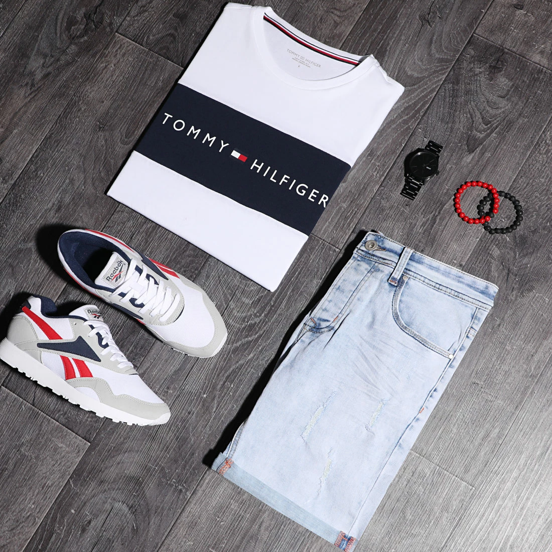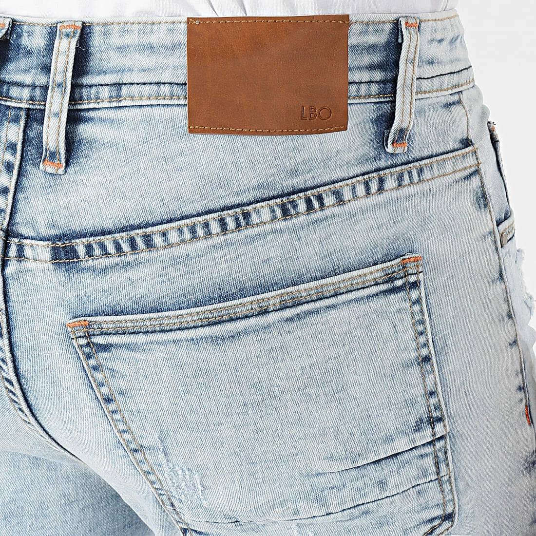 • Short jean stretch à finition délavée et déchirée