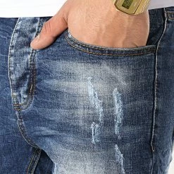 Budget ⌛ Short Jean Avec Dechirures B77005 Bleu Medium de LBO 💯