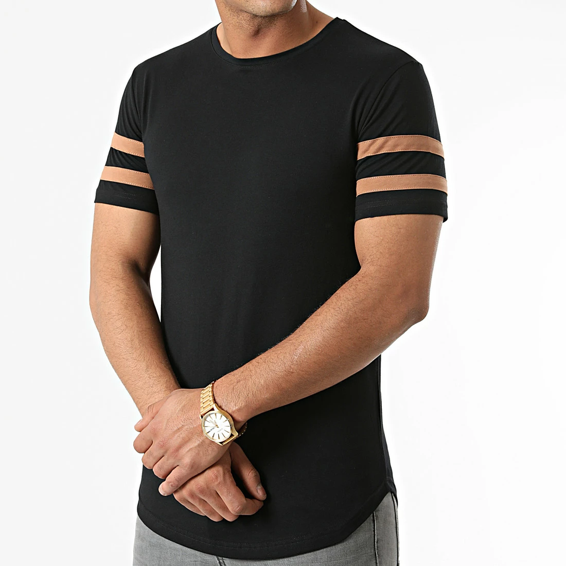 Nouveau 😉 Tee 👕 Shirt Oversize Avec Bandes Camel 1893 Noir de LBO 😍