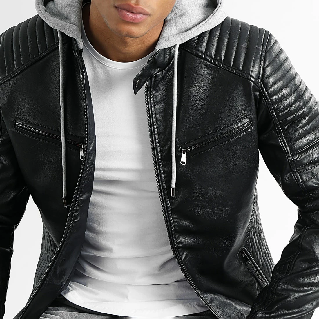 Grosses soldes 😍 Veste Biker Capuche 0041 Noir Gris Chiné de LBO 🤩